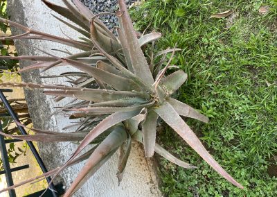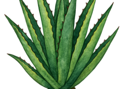 Grande succulente en rosette, feuilles charnues, gris-vertes ou panachées, 1,5–2 m. Chaque feuille finit en épine acérée. Floraison unique (monocarpique) après 10–30 ans, avec tige florale jusqu’à 8 m, puis la plante meurt.