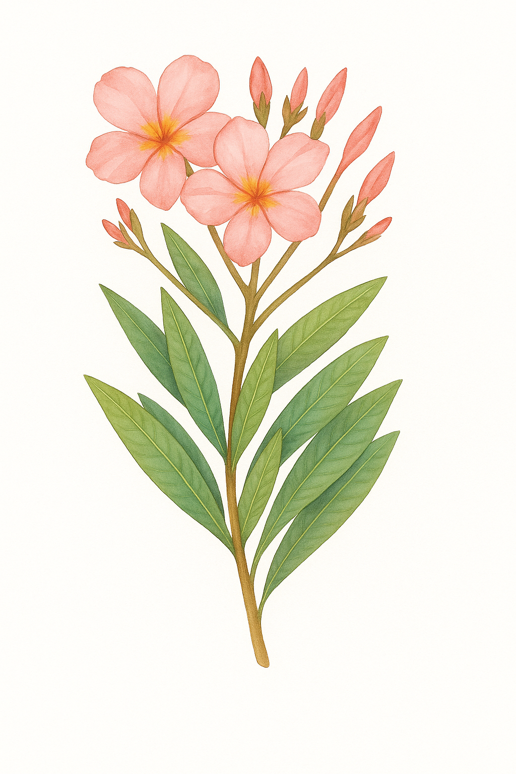 When Oleander arrived at the place where he had last seen Nerion, he found only this plant. Kneeling in despair, he realized that he had lost his beloved forever. From that moment on, the plant was called "Nerium Oleander" in honor of both Nerion, who became a symbol of freedom and beauty, and Oleander, the hero who loved her deeply but could never win her over.