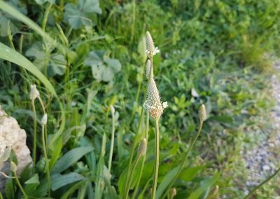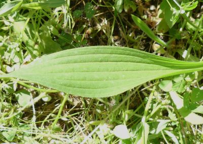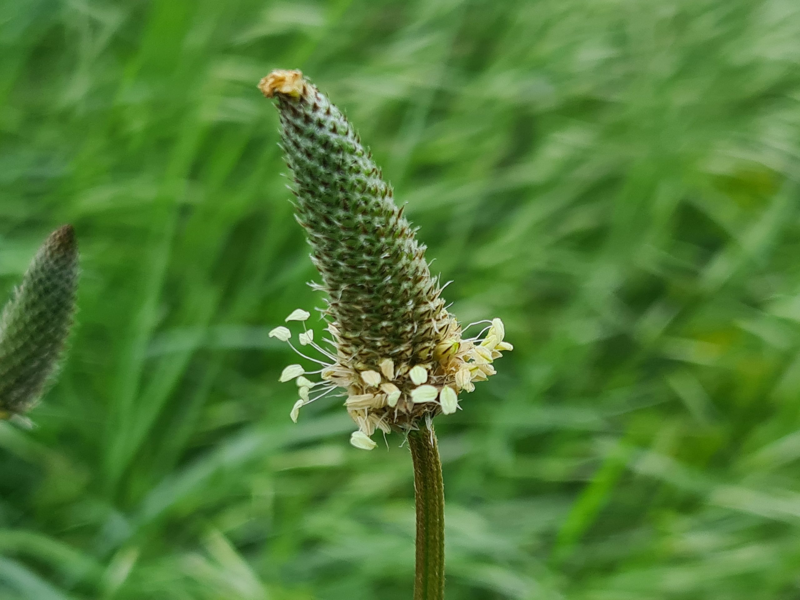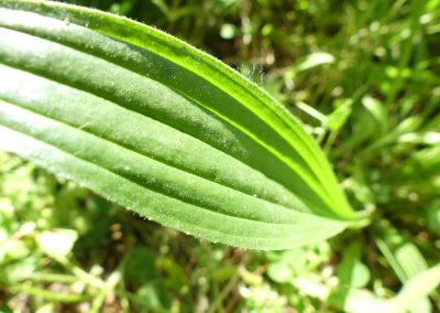 Plante herbacée vivace, 10–60 cm. Feuilles lancéolées, glabres ou peu velues, 3–7 nervures parallèles. Hampe florale pubescente et sillonnée, plus haute que les feuilles, épi ovoïde à oblong. Floraison avril–octobre.