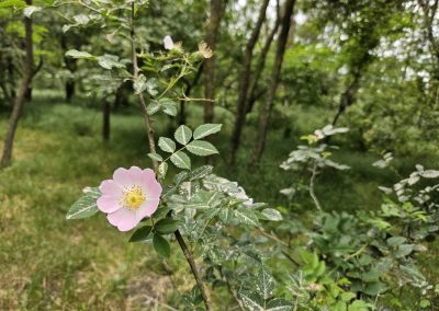Ornamental in groups or isolated, decorative, rootstock for roses. Pharmaceutical: fruit rich in vitamins, mineral salts, tannin, volatile oils. Recommended in avitaminosis, enterocolitis, peripheral circulation disorders.