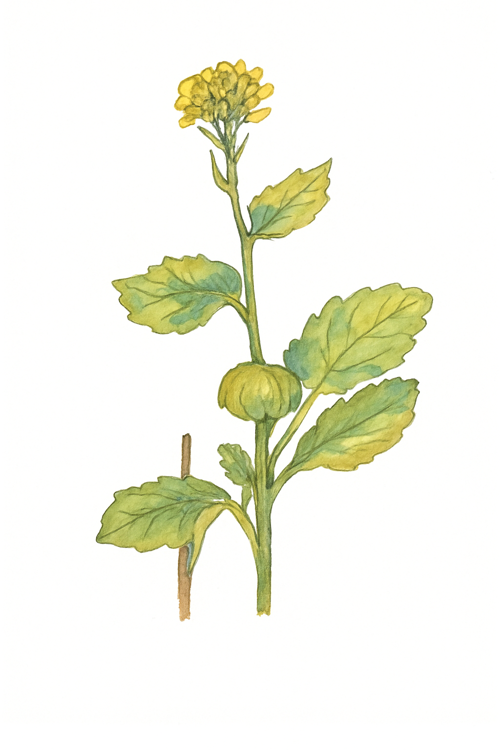 In the days of ancient Greece, there lived a young shepherdess named Lapsana. She was known for her gentle nature and deep connection to the land. Lapsana roamed the hillsides with her flock, always surrounded by wild plants and flowers, which she loved dearly. Among them was a small, yellow-flowered plant that she cared for above all others—wild mustard.