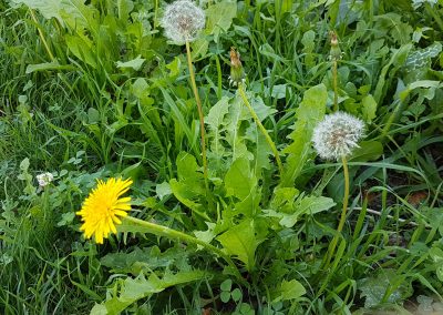 Plante herbacée vivace formant une rosette basale de feuilles profondément dentées, larges et allongées, vertes à bords irréguliers. Tige creuse, sans feuilles, portant une seule fleur jaune vif composée de nombreux petits fleurons ligulés. Floraison : printemps–automne. Après floraison : capitule sphérique d’akènes plumeux dispersés par le vent. Très rustique, colonise facilement prairies, pelouses, bords de routes et terrains perturbés.